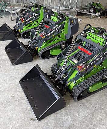 Derette's range of mini skid steers are engineered for sleek manoeuvrability, effortlessly slipping through standard gates and down garden paths.