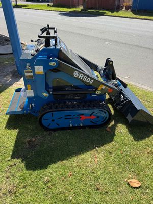 The Rippa RS04 is a compact, mini skid steer featuring a 11.1 hp Kubota Z482 diesel engine and a 3-pump hydraulic system.