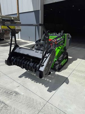 Mini Skid Steer NZ Forestry Mulcher is a specialised attachment for a mini skid steer loader designed to clear and mulch vegetation, including trees, brush, and stumps.